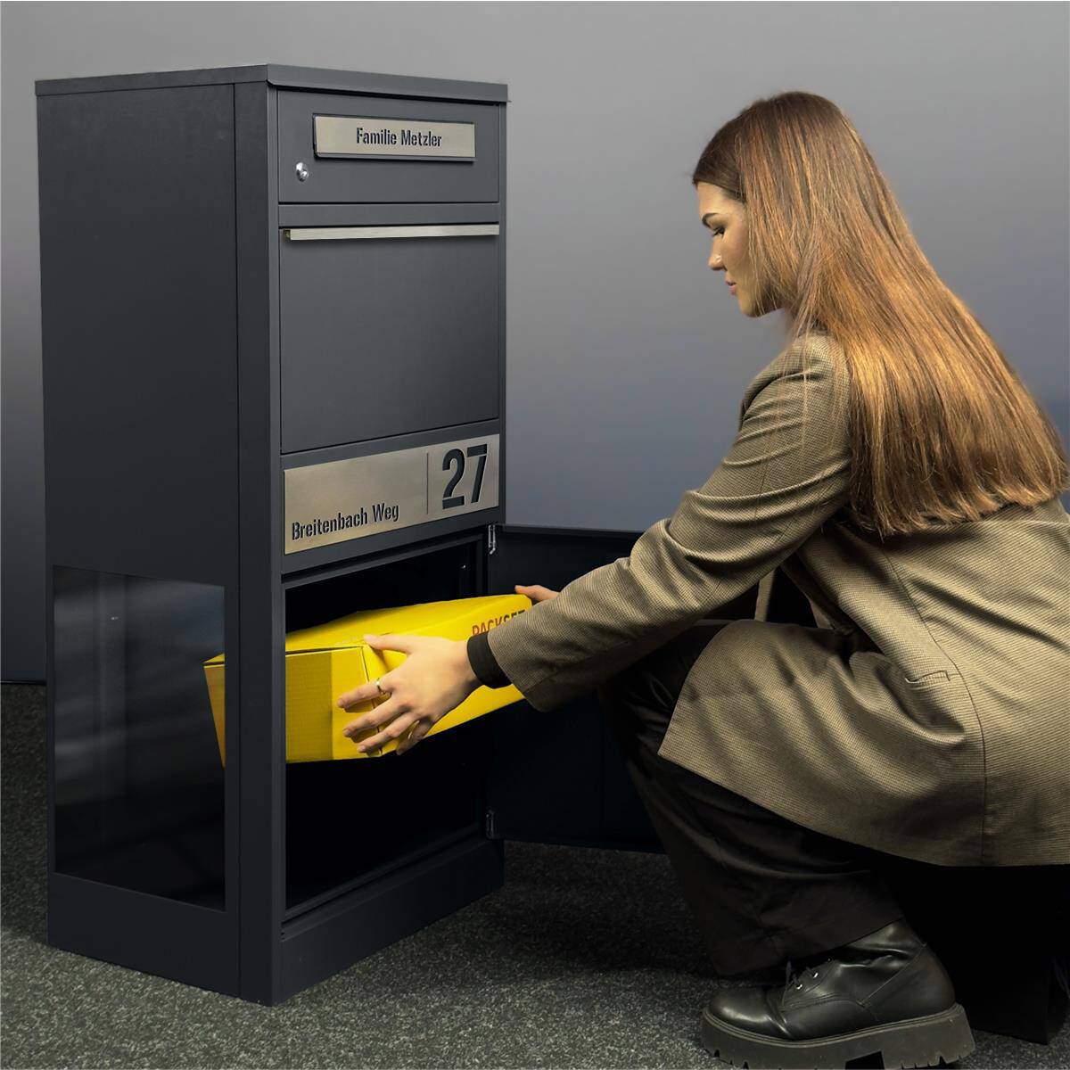 Metzler Briefkasten und Paketbox in Anthrazit mit beidseitigen Sichtfenstern