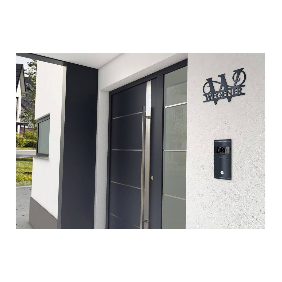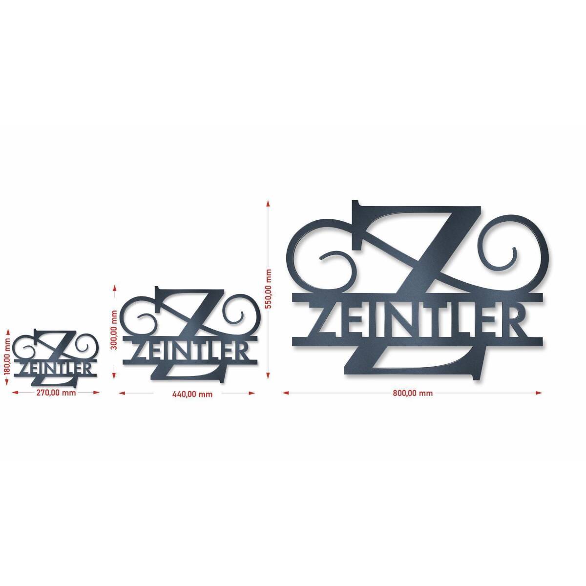 Das rostfreie Stahl wird durch die Pulverbeschichtung in der Trendfarbe Anthrazit verstärkt und sorgt so dafür, dass der Namenszug über Jahre hinweg Wind und Wetter trotzt und zudem äußerst pflegeleicht daherkommt.