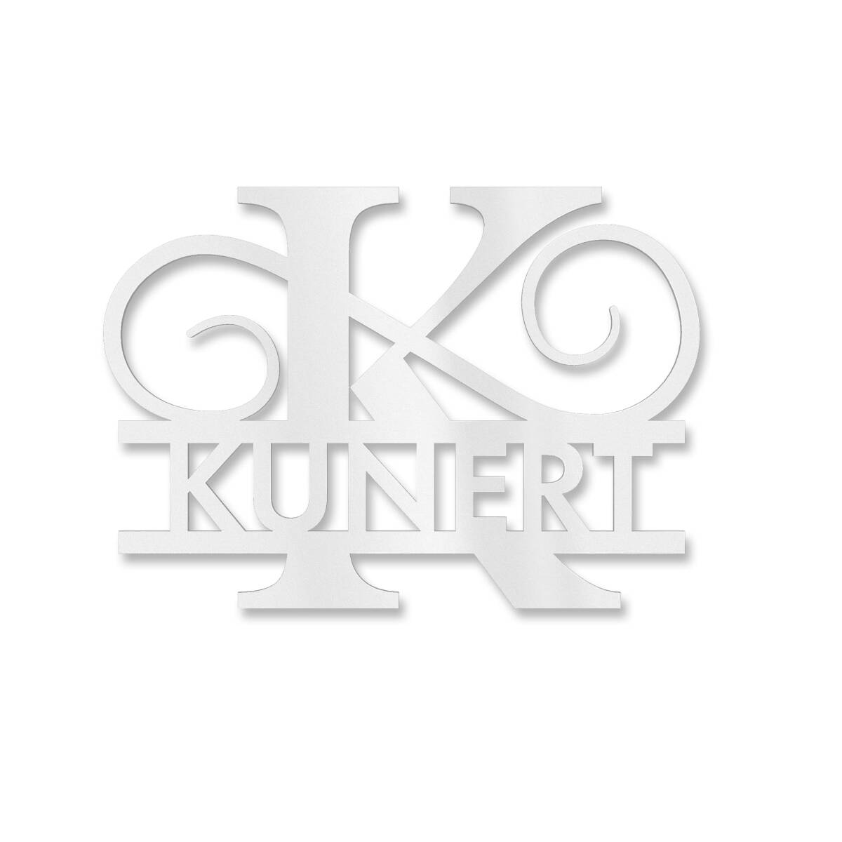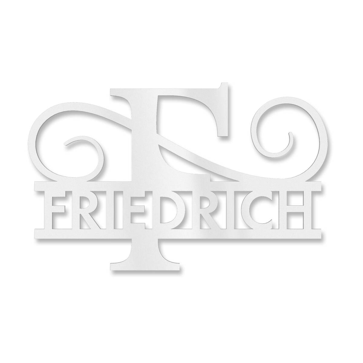 Améliorez votre entrée avec cette plaque de nom exclusive de haute qualité. Le plus récent design de Metzler convainc non seulement par son allure élégante, mais aussi par sa haute qualité. Le lettrage consiste de votre nom personnel ; également la première lettre de votre nom de famille est symbolisée en tant que monogramme et soulignée par un ornement. Grâce à l’épaisseur de 2 mm se distingue particulièrement de la façade et est facilement visibles de loin.