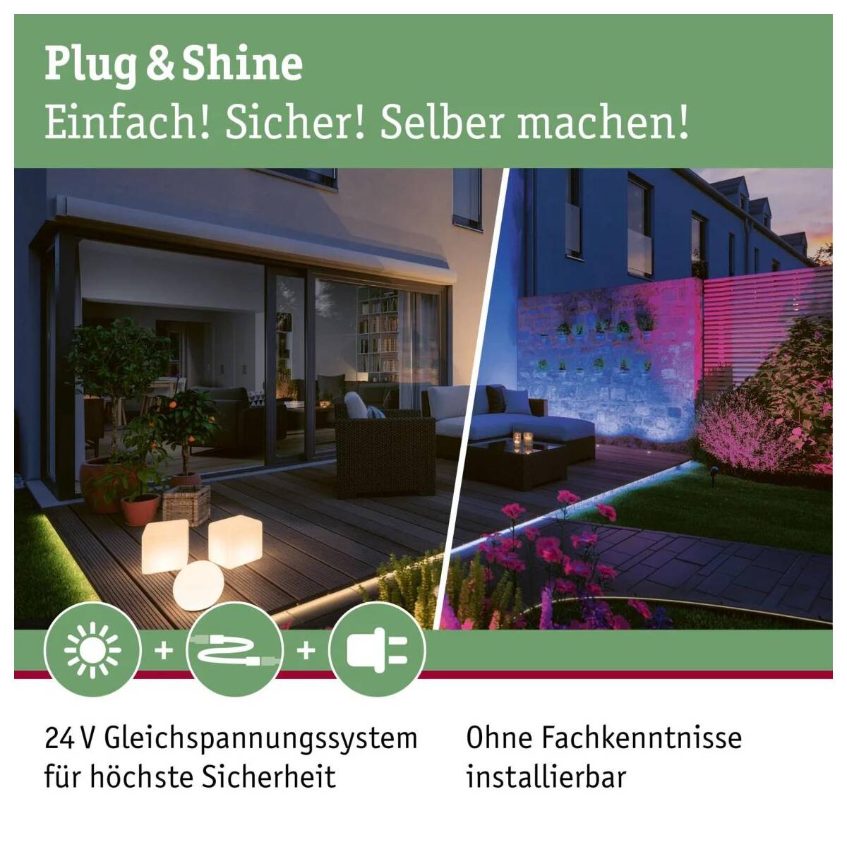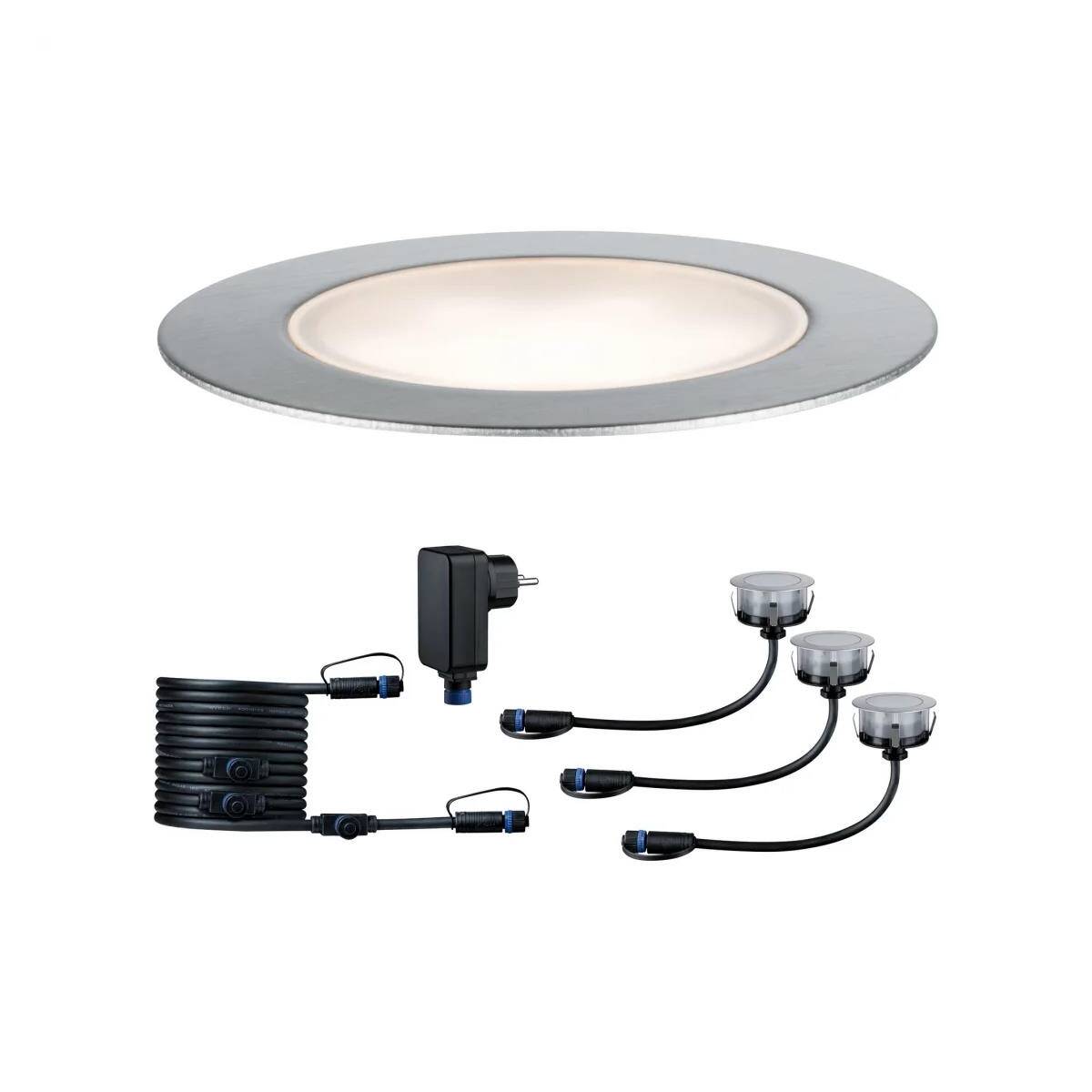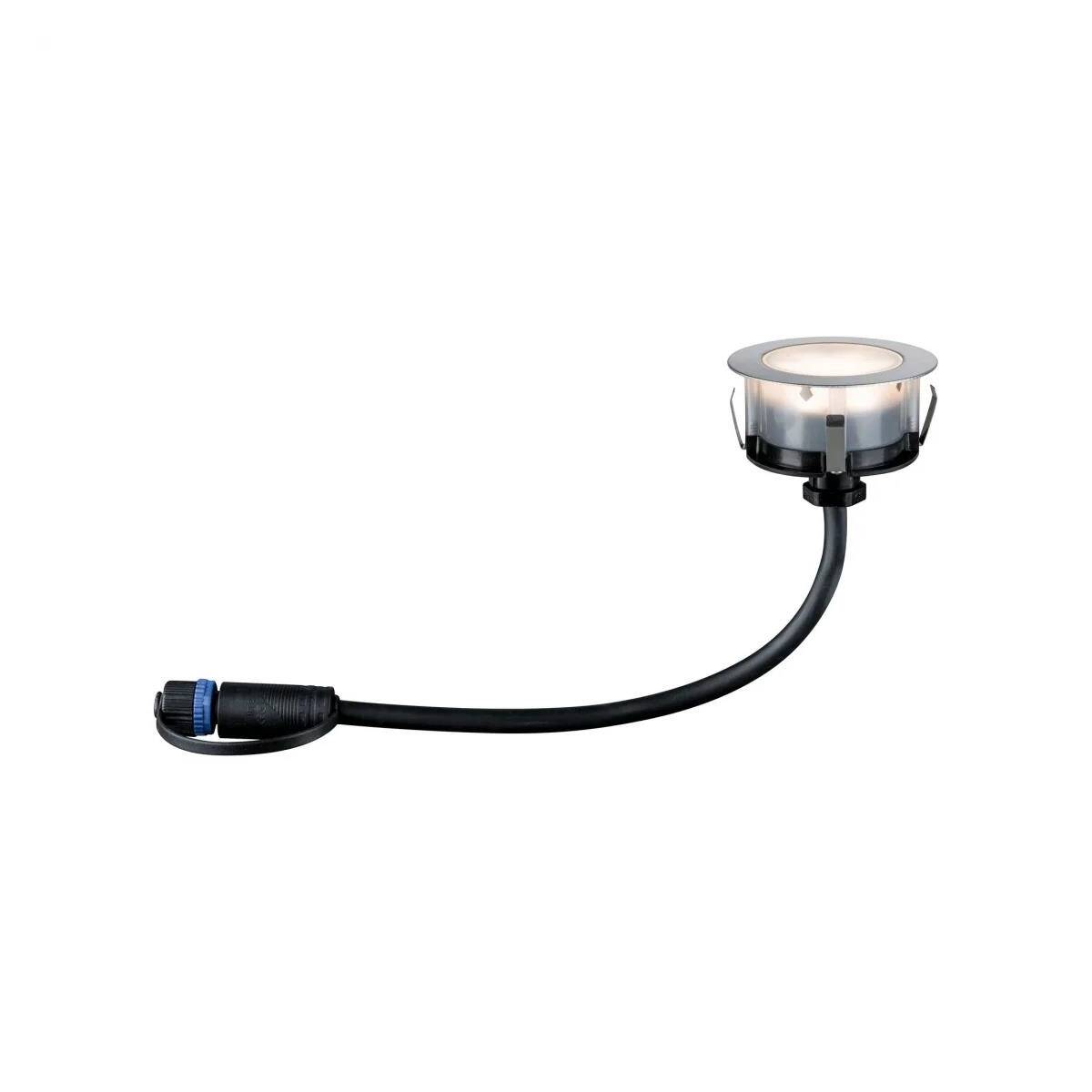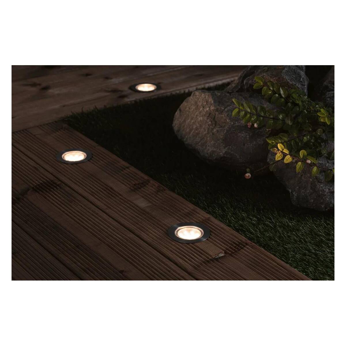 I faretti da incasso Floor Eco Plug & Shine con protezione dagli spruzzi d'acqua forniscono punti luce decorativi di colore bianco caldo lungo percorsi o bordi di terrazze. Con trasformatori, connettori e altre lampade della serie Plug & Shine si possono creare installazioni luminose personalizzate per esterni. Non è calpestabile o carrabile.