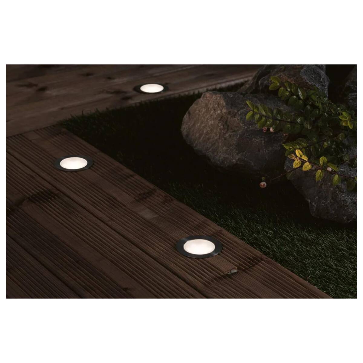 Der runde Plug & Shine Bodeneinbaustrahler Floor sorgt fĂŒr dekorative Lichtpunkte an Weg- oder Terrassenbegrenzungen. Das fest verbaute LED-Modul liefert nach Wunsch buntes oder weiĂes Licht. Farbeinstellungen lassen sich via Zigbee vornehmen. Dadurch werden weitere Steuerelemente wie die Plug & Shine Controller ĂŒberflĂŒssig. Der Strahler eignet sich ideal fĂŒr den Einbau in Holz-Terrassen.