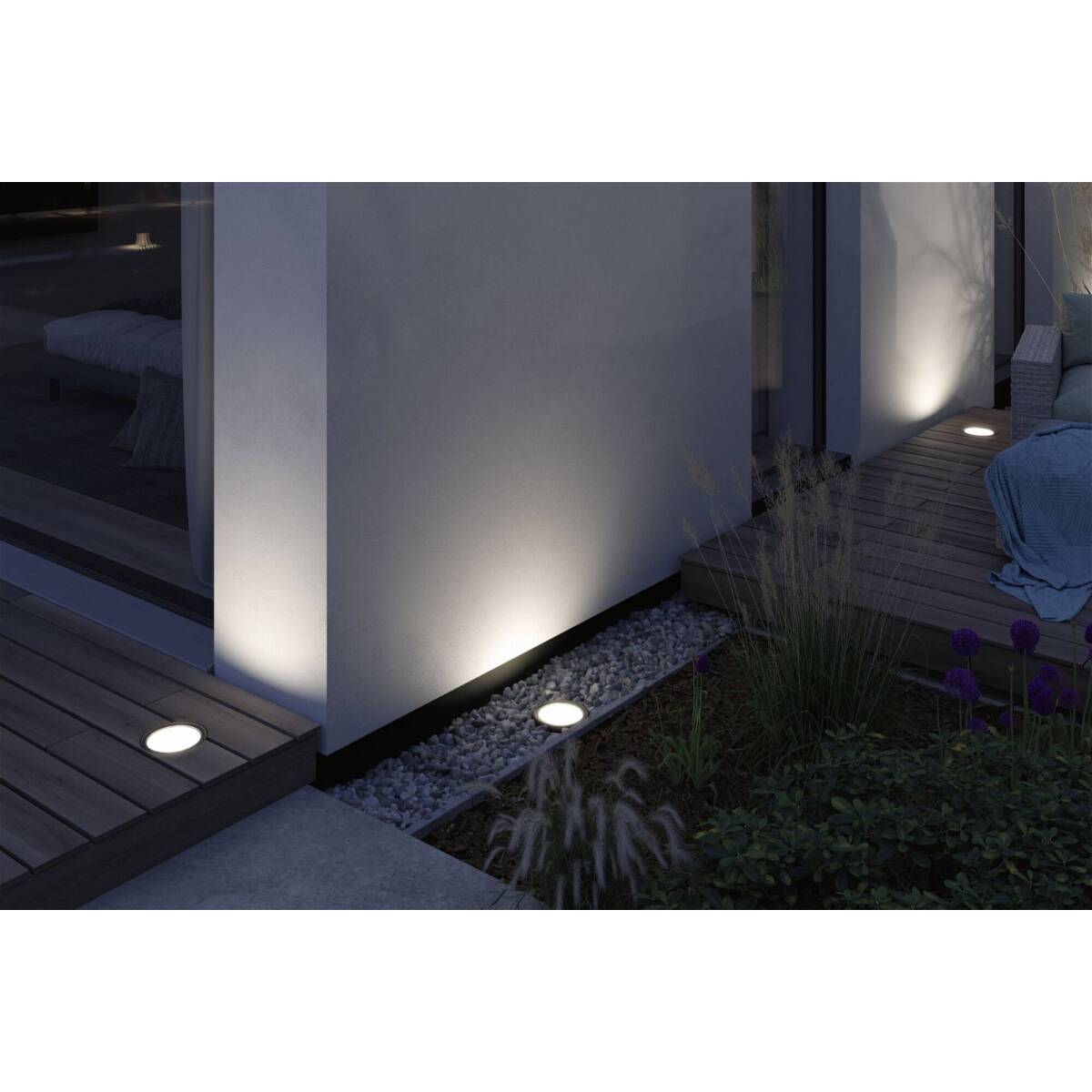 Mit seinem modernen Design im schlichten Metallgehäuse fügt sich die Plug & Shine Bodeneinbauleuchte Ocos perfekt in jeden Außenbereich ein und leuchtet optimal Wände und Pflanzen aus. Die IP67 geschützte Leuchte ermöglicht gezielte warmweiße Lichteffekte. Durch das gehärtete Sicherheitsglas hält der Strahler einem Gewicht von bis zu 1000 kg stand und ist daher ideal für den Einbau in Gehwegen oder Terrassenflächen geeignet. Mit Trafos, Verbindern und weiteren Leuchten aus der Plug & Shine Serie lässt sich eine individuelle Lichtinstallation für den Außenbereich zusammen.