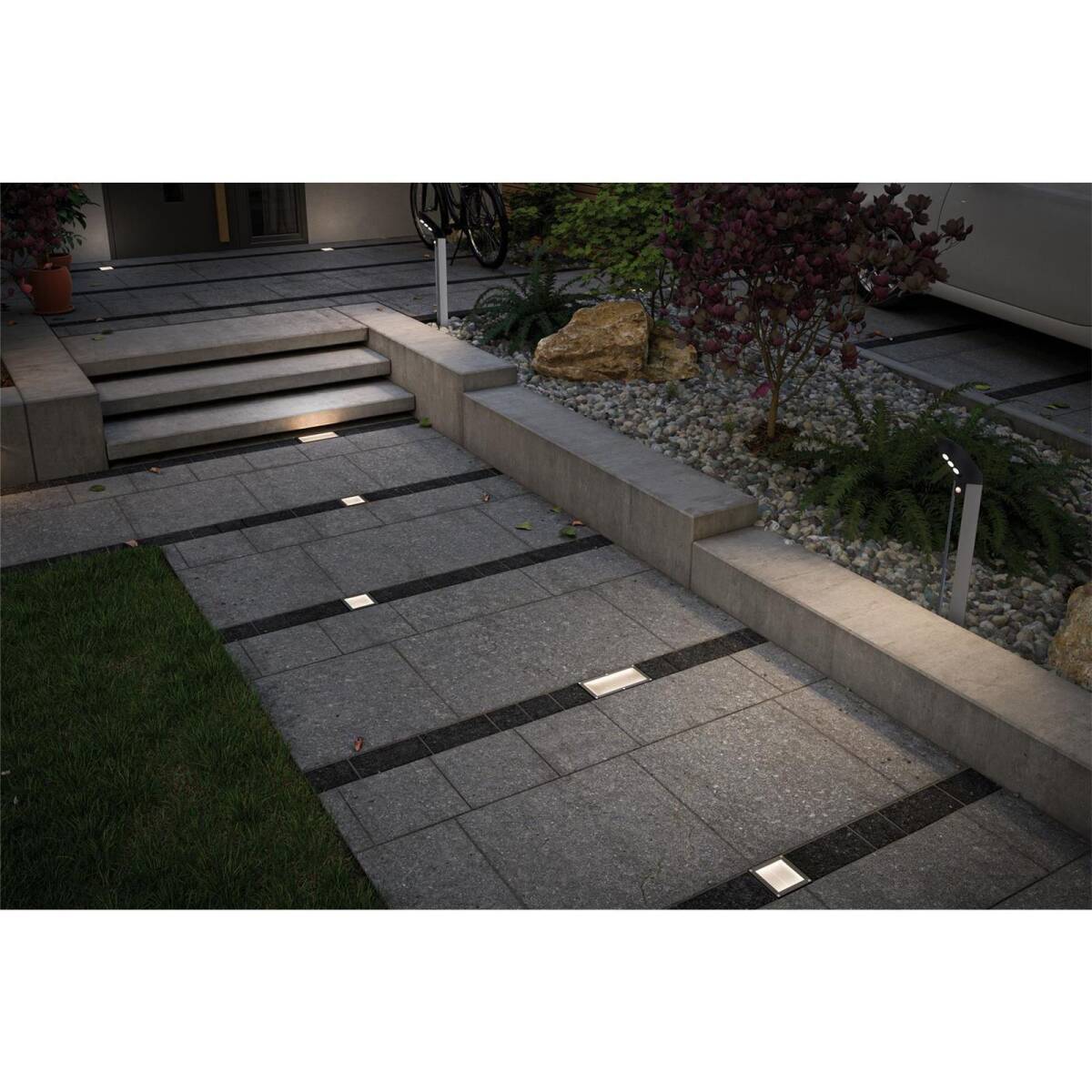 Leuchtende Pflastersteine ganz ohne Kabel: Die Solar-Bodeneinbauleuchte Aron in den Abmessungen 10x10 cm, lässt sich ganz unabhängig vom Stromanschluss verlegen. Tagsüber werden die Akkus durch Sonnenlicht aufgeladen und in der Dämmerung leuchtet ein Orientierungslicht das zum Funktionslicht wird, wenn der Bewegungsmelder Personen in der Nähe wahrnimmt. Da die Solarzellen etwas zurückgesetzt liegen, sind sie nahezu unsichtbar und man nimmt nur eine gleichmäßig leuchtende Fläche wahr. Die Bodeneinbauleuchte ist dank Schutzart IP67 garantiert wasserdicht, rostfrei und für den Einbau in begehbaren Außenbereichen geeignet - bis zu 500kg Gewicht steckt die Leuchte locker weg.