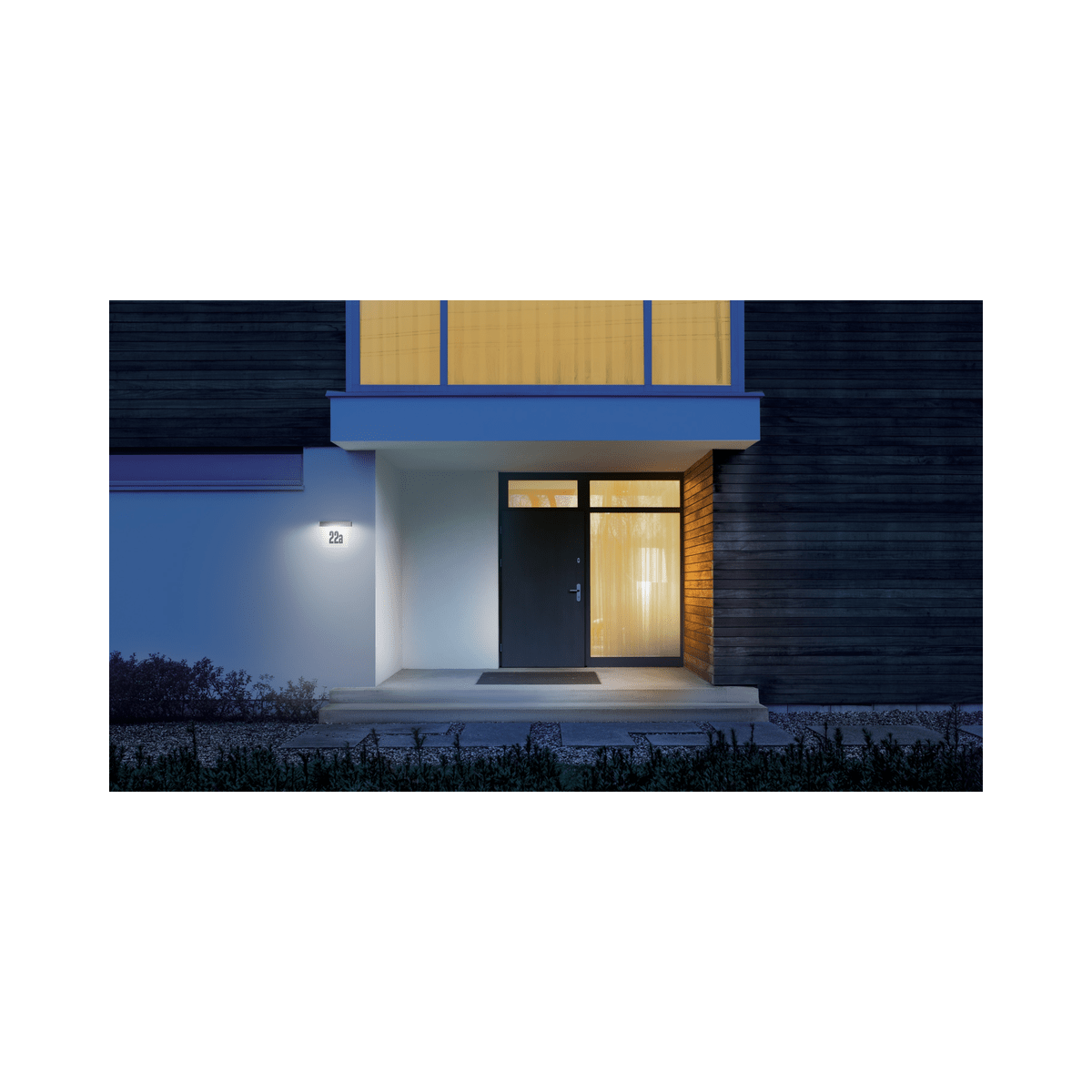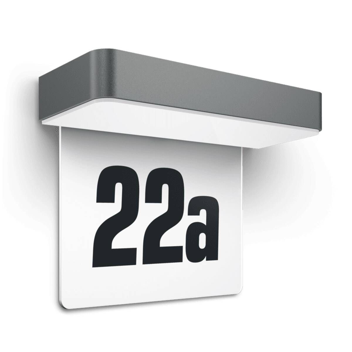 Solarleuchte mit Dämmerungssensor und Hausnummernpanel, im eleganten schlichten Design mit hochwertigem Aluminiumgehäuse