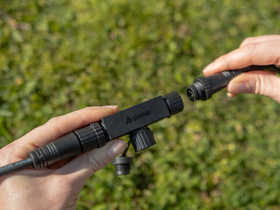 T-Adapter mit 2 AusgĂ€ngen zur Erweiterung des STEINEL 24V Garten Lichtsystems mit 24V Gartenleuchten, VerlĂ€ngerungskabeln und Konnektoren in verschiedenen AusfĂŒhrungen