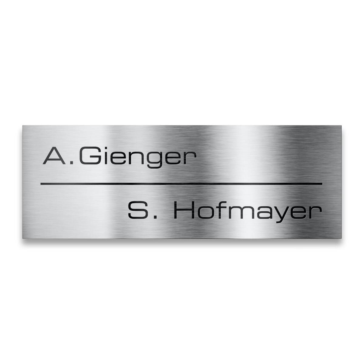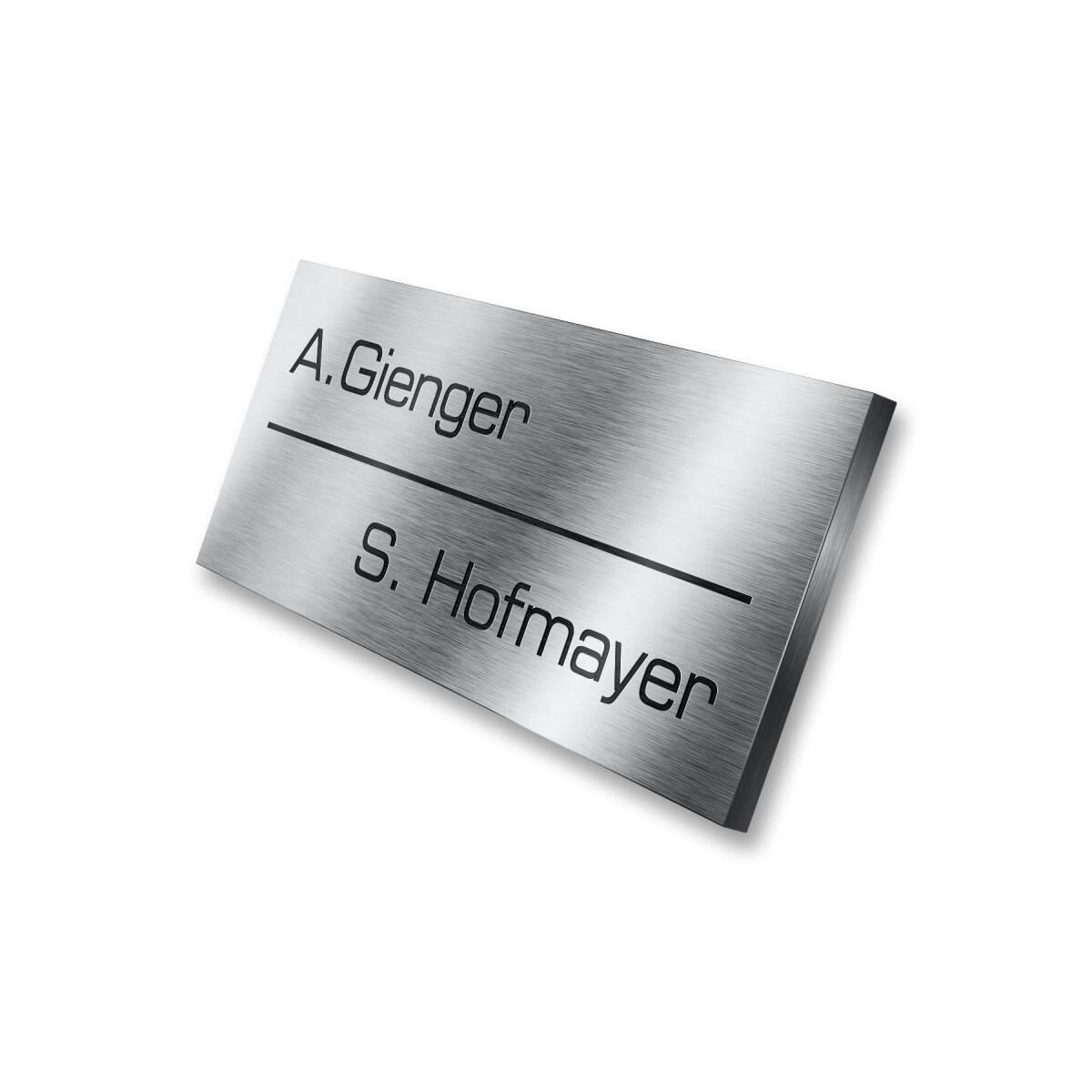 Abbellisci il tuo ingresso con la nostra targa di nome di alta qualità . La targhetta è realizzata in acciaio inossidabile V2A. Ciò rende la targa estremamente resistente agli agenti atmosferici e durevole per molti anni. Come caratteristica speciale, puoi far incidere il tuo nome sulla targhetta tramite incisione laser. Grazie alle due righe di incisione opzionali, la targhetta è ideale anche per case bifamiliari. Il vantaggio dell'incisione laser è che è permanentemente resistente e non sbiadisce. Per questo sono disponibili numerosi tipi di carattere moderni.