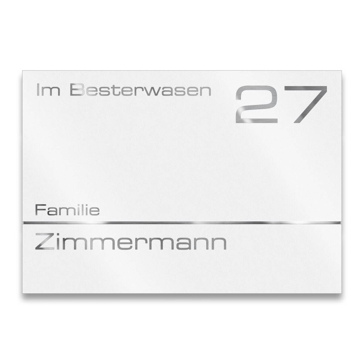 Targa civica moderna Metzler in acciaio inox & acrilico in bianco