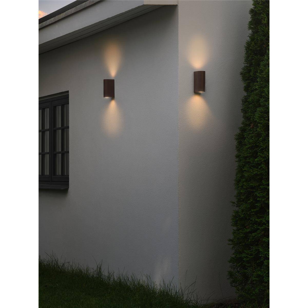 Die Dion Wandleuchte mit ihrem schön geschwungenen Design ist minimalistisch und elegant zugleich. Sie erzeugt nach oben und unten gerichtetes Licht und ist ideal für die Hausfassade, die Auffahrt oder den Haupteingang.